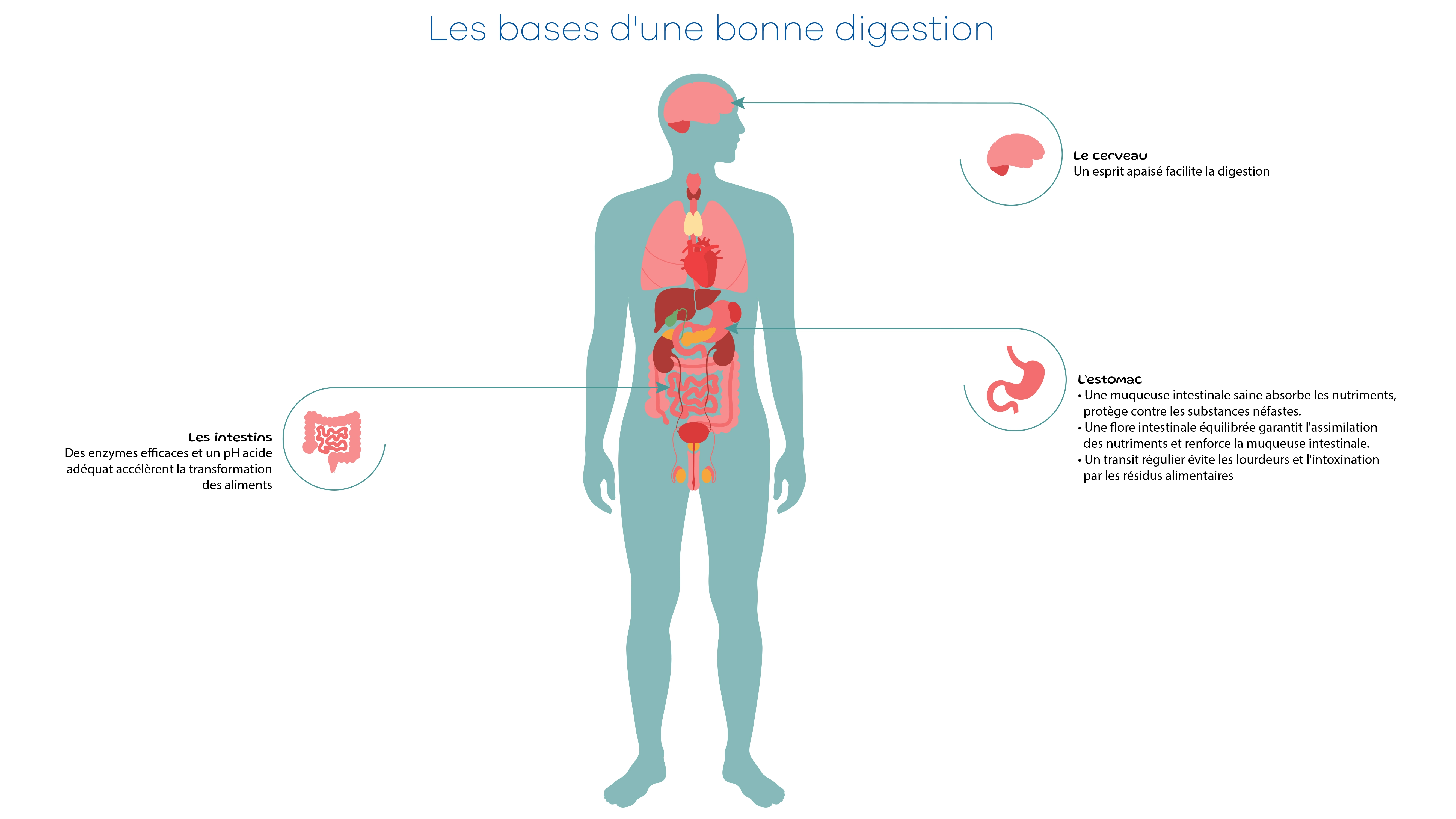 Une tension sur le haut de l'appareil digestif peut incriminer l'estomac et pourtant une flore déséquilibrée dans l'intestin peut aussi y contribuer ! Il est intéressant de considérer le système digestif dans son ensemble car les effets du dérèglement d'un organe peuvent être systémiques. Est-ce une production d'acide gastrique, une irritation intestinale, un problème de transit ? Il faudra analyser les signes pour comprendre les causes et avoir une bonne prise en charge.