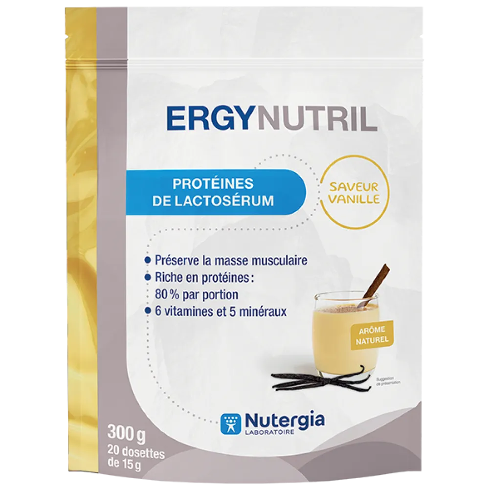 ERGYNUTRIL est une gamme de préparations riches en protéines de lactosérum, proposant des saveurs particulièrement gourmandes (vanille ou cacao). Destinées aux personnes souhaitant compléter leur alimentation, elles permettent d’assurer un apport quotidien et suffisant en acides aminés et protéines, éléments constitutifs essentiels des muscles et des tissus.