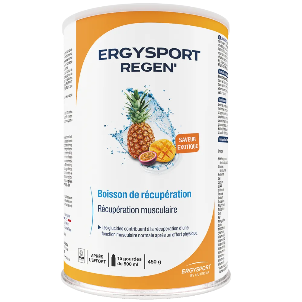 La boisson ERGYSPORT REGEN' est LA boisson idéale pour une récupération optimale et recouvrer tous les besoins nutritionnels à la suite d’une activité physique.